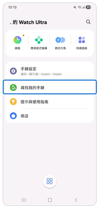 請注意:如欲藉助 Galaxy Wearable 應用程式,透過Google™ Maps 找回手錶,您必須在智慧型手機上安裝Smartthings應用程式。