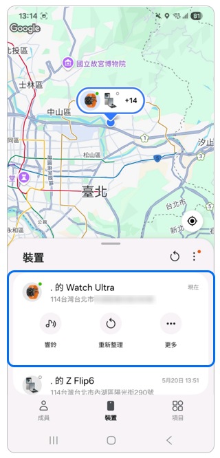 也可以透過「分享此裝置所在地點」和 Samsung Members 應用程式中的某位聯繫人分享所在地點。