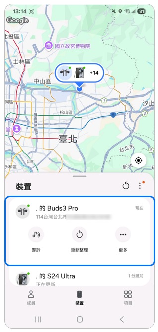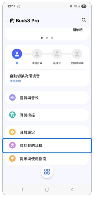 請注意:如欲藉助 Galaxy Wearable 應用程式,透過Google™ Maps找回耳機,您必須在智慧型手機上安裝Smartthings應用程式。