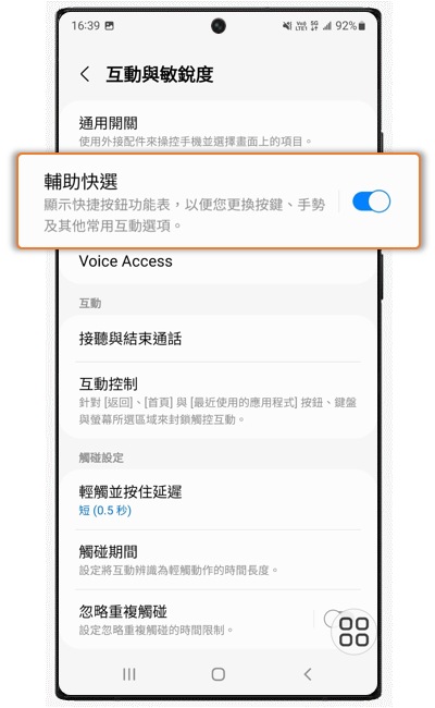 旗艦機 - 請參考:「① - 實體按鍵」、「② - 滑動手掌」、「③ - 輔助快選」、「④ - 通知列」