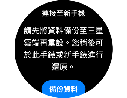 在將 Galaxy Watch3 & Active 連接到新智慧型手機之前,請務必將您 Galaxy Watch3 & Active 中的資料備份儲存於安全的位置。