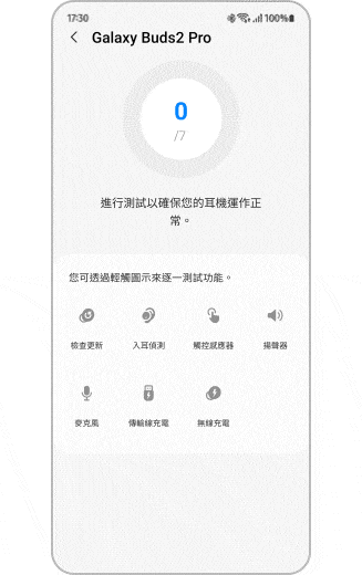 - Galaxy Watch Buds 2 Pro 及更高版本提供自我診斷服務。