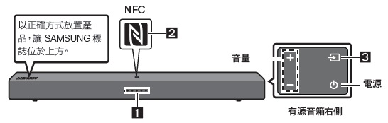 您可以將手機置於 Soundbar 的 NFC 偵測區域內,以啟用藍牙連線。