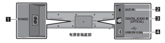 USB - 在此連接 USB 裝置,以透過 Soundbar 播放 USB 裝置上的音樂檔案。