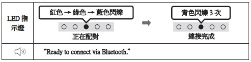 • 在配對完成前,多彩 LED 會依紅色 → 綠色 → 藍色的順序變更發光。