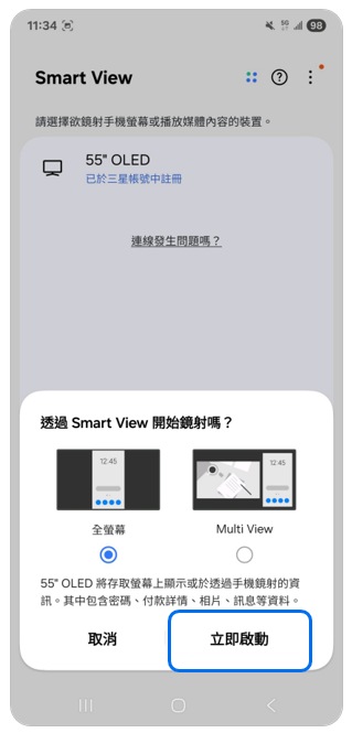 請依照以下步驟使用 Smart View 進行鏡射。