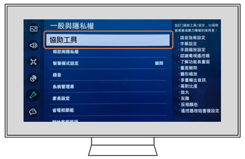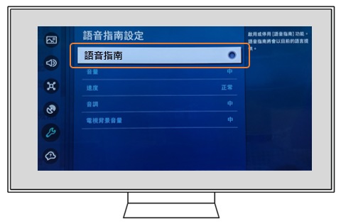 如果您在切換頻道、調整音量或其他設定時聽到語音提示,就表示語音指南功能已開啟。