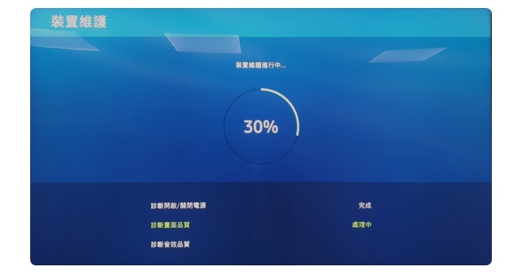 選擇螢幕中間的開始裝置維護按鈕,藉由內建的診斷程式檢視電視的狀態,並列出所有潛在的疑慮。