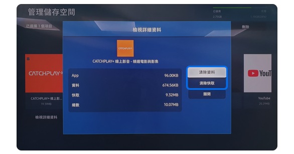 當電視診斷完成後,會自行清除快取的記憶體,並關閉未使用的後台應用程式以釋放記憶體。