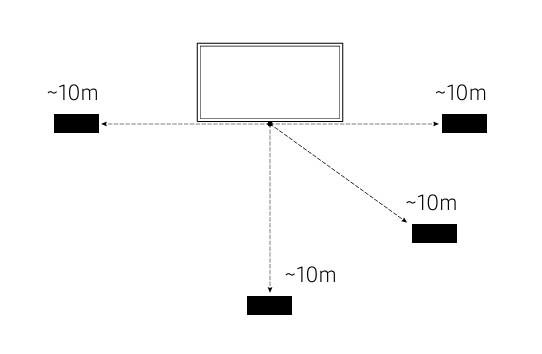 請將無線美型集線器安裝在距離螢幕 10 公尺內的位置。
