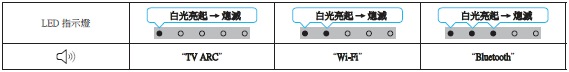 LED 指示燈根據 Soundbar 的目前模式或狀態閃爍、發光或改變顏色。