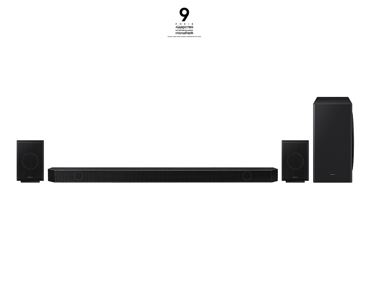 Справжній 9.1.4-канальний звук9 передніх динаміків і динаміків об’ємного звуку саундбара, 1 динамік сабвуфера й 4 спрямовані вгору динаміки огорнуть вас звуком. Завдяки нещодавно доданим тиловим динамікам звук поширюється й відбивається від стелі, дозволяючи отримати новий рівень об’ємного звучання, — те, що треба для вашого телевізора QLED.