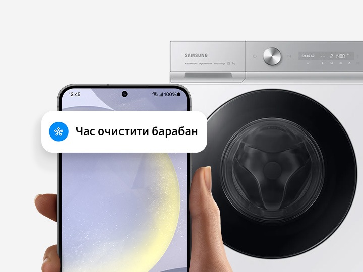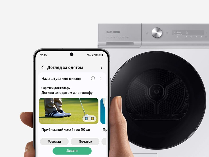 25. Застосунок SmartThings доступний на Android та iOS. Потрібне підключення до Wi-Fi та обліковий запис Samsung. Пральна або сушильна машина й смартфон мають бути зареєстровані під одним обліковим записом Samsung.