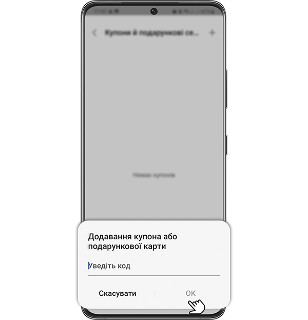 Ви повинні мати обліковий запис Samsung, щоб зареєструватися та використовувати купони з Galaxy Store або зовнішніх акцій. Після реєстрації купонів у вашому обліковому записі Samsung їх можна буде використовувати для покупок платних додатків і товарів у програмі.