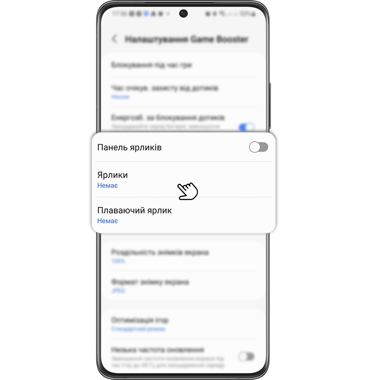 Щоб максимально оптимізувати екран під час гри, у Game Booster доступна опція "Плаваючий ярлик".