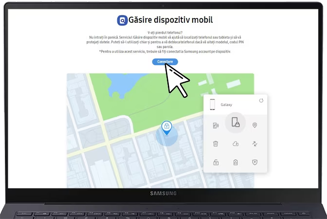 - Dispozitivul trebuie să fie conectat la contul tău Samsung.
