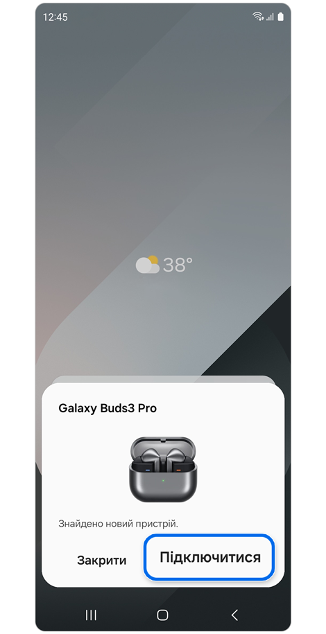 Перш ніж підключати Galaxy Buds до мобільного пристрою, переконайтеся, що зарядний кейс Galaxy Buds достатньо заряджено, а на ваш мобільний пристрій завантажено останню версію програми Galaxy Wearables. Програму можна завантажити з Galaxy Store.