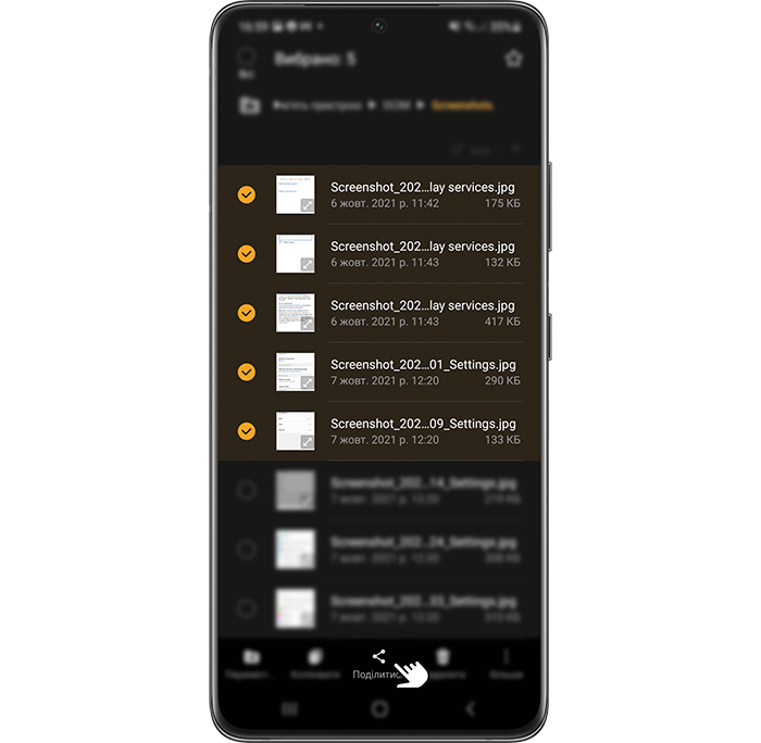 Скопіювати файли до хмарного сховища можна з різних додатків. Наведені нижче приклади допоможуть Вам скопіювати файли через додатки Мої файли та Галерея.