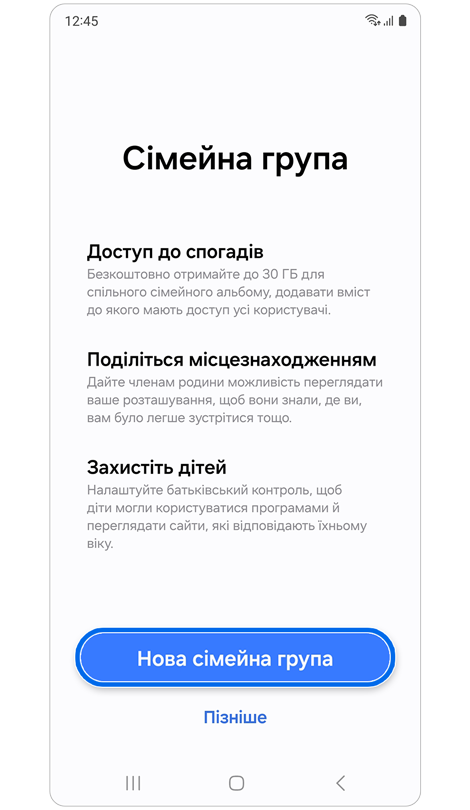 Створення сімейних груп підтримується в One UI 5.1 і пізніших версіях у США та One UI 6.1 і пізніших версіях у Європі.