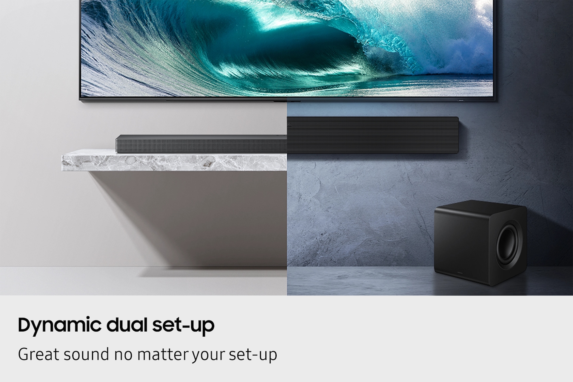 Soundbar made smartLink your soundbar with multiple devices with SmartThings built-in compatibility, then control them all with your TV or smartphone. Create smart automations to make life easier - just use your voice to close the blinds, dim the lights, and power up your TV and soundbar for the ultimate movie night.9