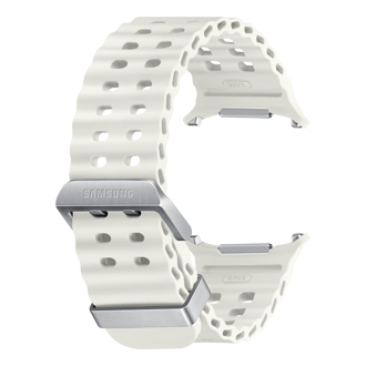 The Galaxy Watch Ultra Marine Band is crafted to meet the performance standards of the new Galaxy Watch Ultra. Designed for water swimming, its titanium buckle is light and durable. With a wide ripple design for easy water drainage and quick sweat drying, you can easily conquer water activities without worries.
