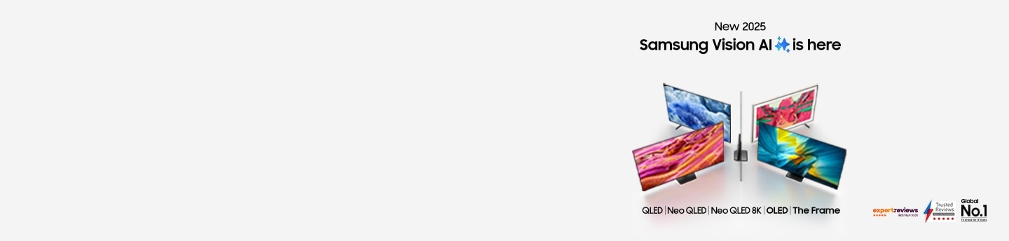 *One UI Tizen: Content and services may vary by region and are subject to change without notice. Agreement to Smart Hub Terms and Conditions and Privacy Policy is required before use. Some content and services require registration and subscription. Requires Samsung account. Tizen OS upgrades will be provided for up to 7 years, starting from release year. Please note that this upgrade does not cover the TV’s hardware performance, features or durability. Upgraded features may vary depending on the specifications and model. Requires internet connection. Data charges may apply.