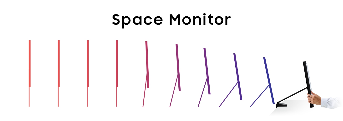 When not in use, the Samsung Space Monitor pushes back to sit flat against a back wall and leave your entire work surface clear. When it’s time for use, simply pull the Space Monitor towards you and adjust to your preferred viewing position.