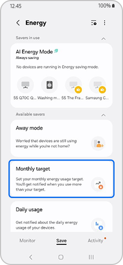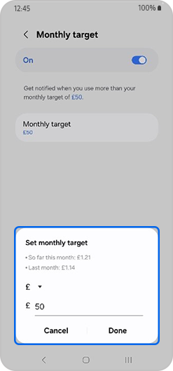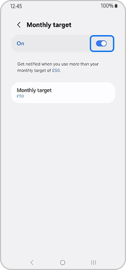 You can set energy usage targets, such as the maximum amount of energy you would like to use each month. Once this target has been reached, you will receive notifications warning you that you have exceeded the limit.