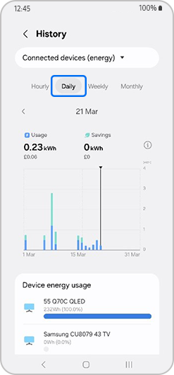 This feature helps you reduce energy consumption based on your habits and preferences, without you having to manually adjust settings or constantly monitor each device. You can track which specific devices are using the most energy and when, enabling you to adjust how you use them to maximise energy efficiency.
