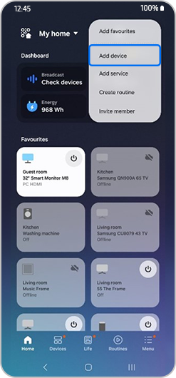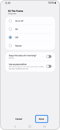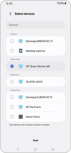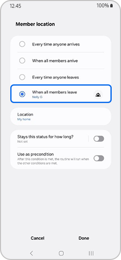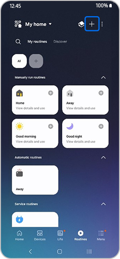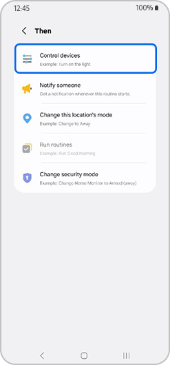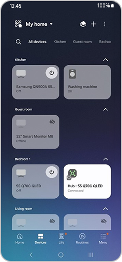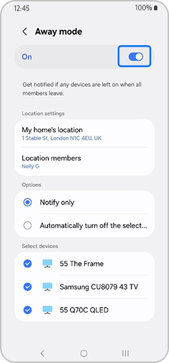 With the Routines feature in SmartThings, you can programme certain devices in your home to switch on or off depending on whether or not you’re going to be at home. One convenient, energy-efficient feature is having several devices switch off when you leave the house.