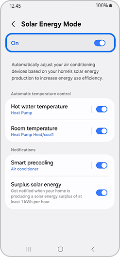 Solar Energy Mode allows you to optimise solar energy and reduce energy usage by controlling heating and cooling systems: