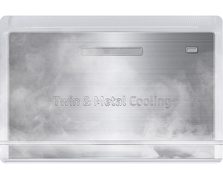 The metal cooling plate in the Bespoke AI Refrigerator helps retain the fridge’s temperature, restoring any heat loss quickly.