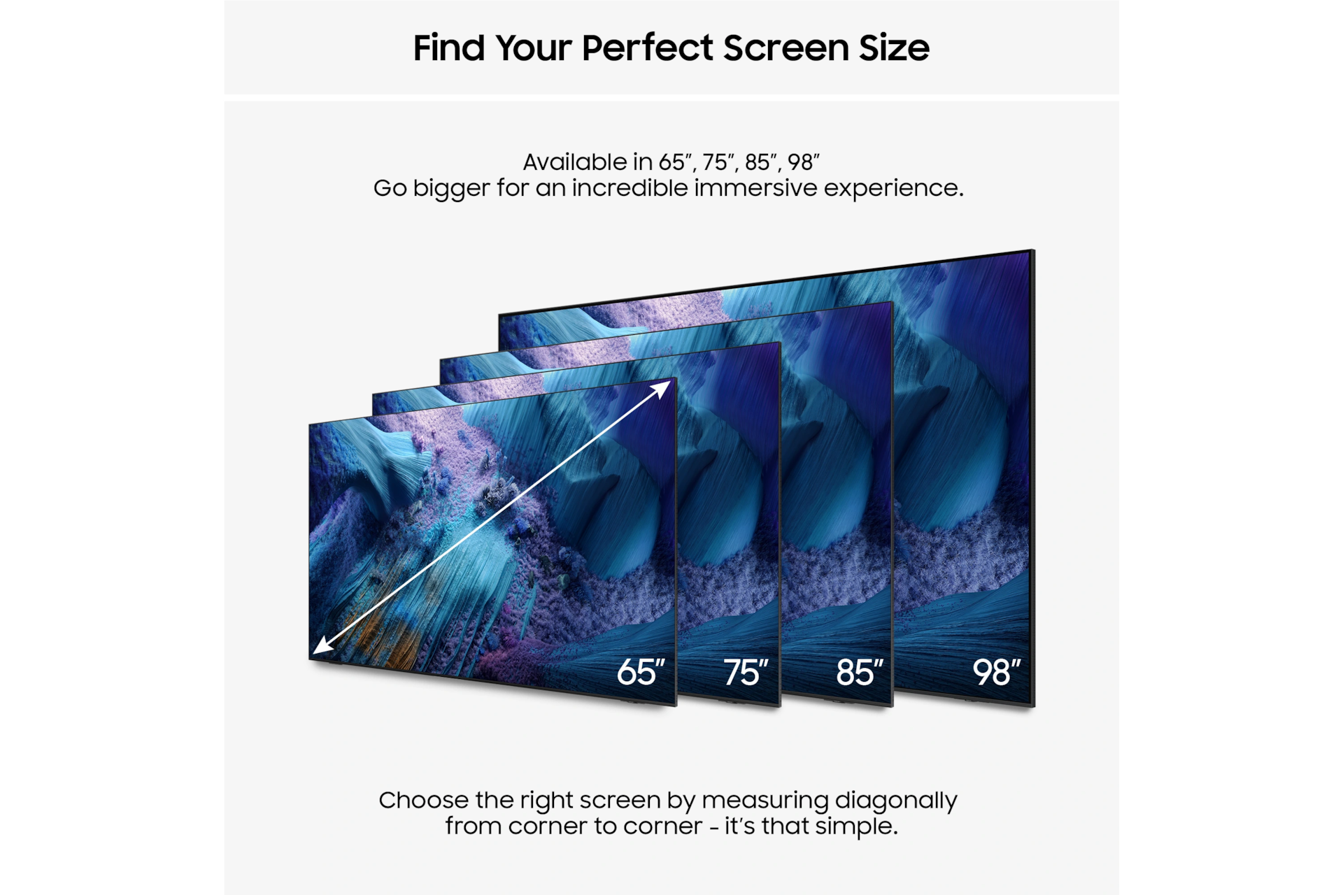 - 9. Infinity One Design with One Connect Box applicable to 98". Infinity Screen not applicable to 98". TV power cable required. Wireless One Connect operating distance can vary depending on the surrounding environment Go to feature
