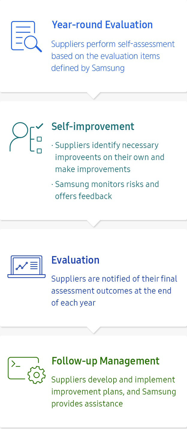 To live by our business philosophy that ‘our competitive edge at Samsung Electronics comes from the competitive edge of our suppliers’, we further push the boundary of our win-win management initiatives to include both domestic and overseas suppliers. We provide a wide array of programs to support funding, education, and innovation to ensure that our suppliers become globally-competitive.