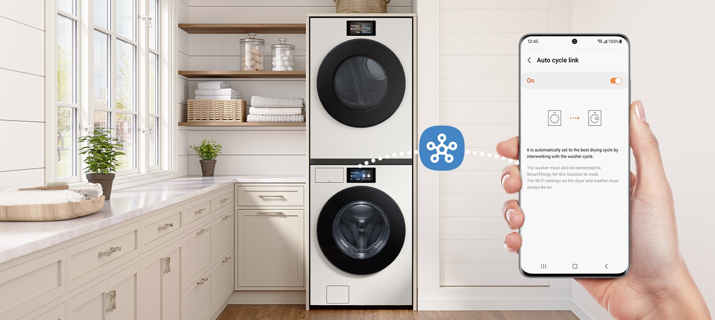 There's been a growing shift toward connected appliances that can automate routine tasks and free up time and space for more important tasks. Samsung appliances, such as the Bespoke Single Wall Oven, Bespoke All-in-One Combo washer and dryer and Family Hub+ refrigerators, are packed with features that simplify life and keep everything running smoothly, including: