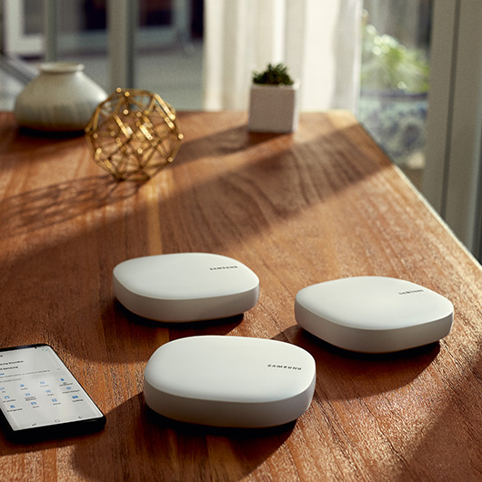 The Samsung Connect Home Wi-Fi system is a new kind of all-in-one network with a Wi-Fi router and SmartThings Hub. It delivers a strong connection across the entire home with just a simple setup and it’s protected by hardware-based security technologies.3