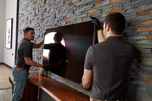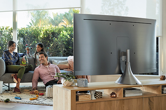 The No-Gap Wall MountTM, available for our Q9FN and Q7FN models and included with The Frame TV, enables the TV to lay flush against the wall and an easy setup with just two brackets. It’s also available for the Q7CN model though, because this model is curved, it will not be completely flush to the wall. The mount still retains flexibility, allowing for tilting the TV on a higher wall placement like a fireplace. These TVs are also VESA-compliant for addressing any wall mount solution.1