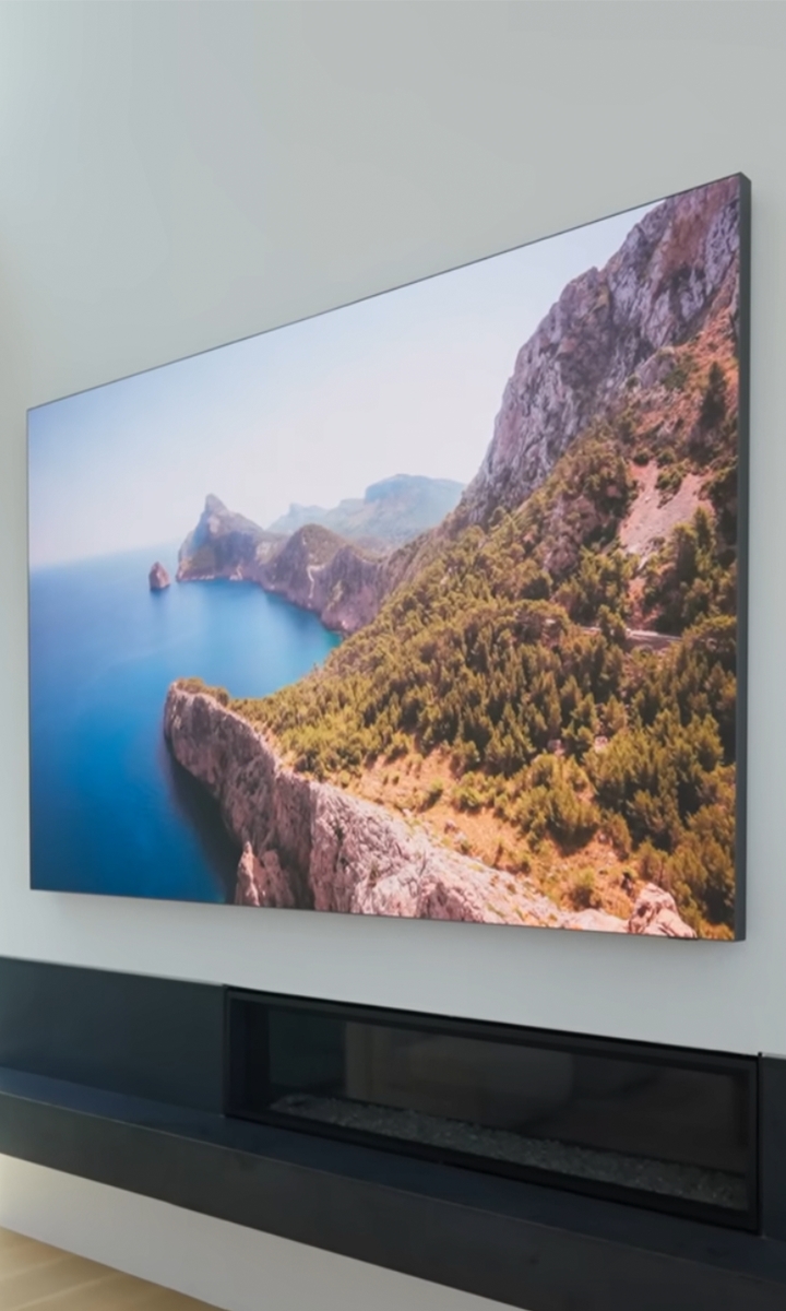 • • Samsung’s All-in-One IAC 130" 2K Display includes everything you need: built-in control box, wall brackets, speakers and décor bezels.
