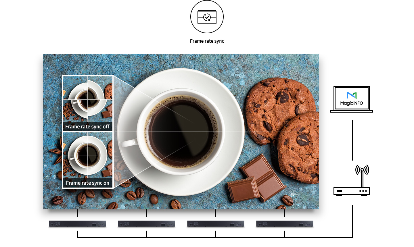 Frame rate synchronization guarantees smooth content without screen tearing when multiple S-boxes are connected. This means users can enjoy almost perfectly smooth playback even when combining or splitting content across cabinets.