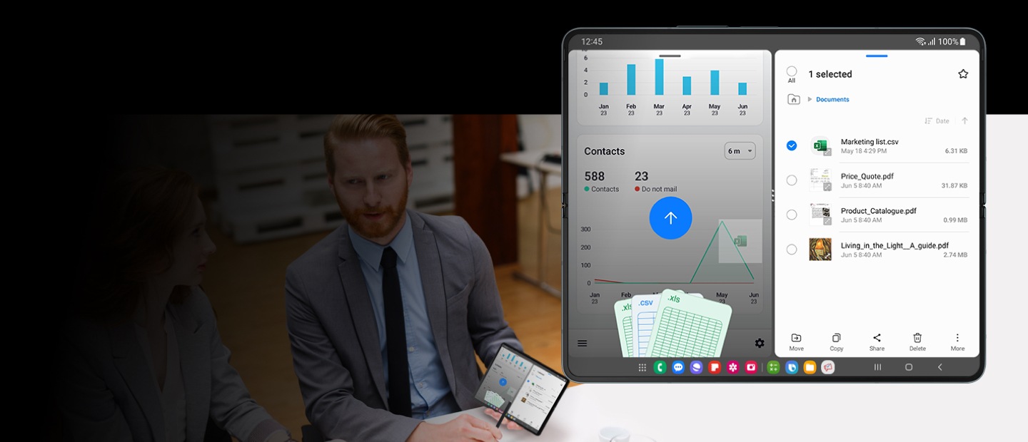We’ve partnered with leading business software providers12 to create a more intuitive mobile experience that takes full advantage of the foldable form-factor.