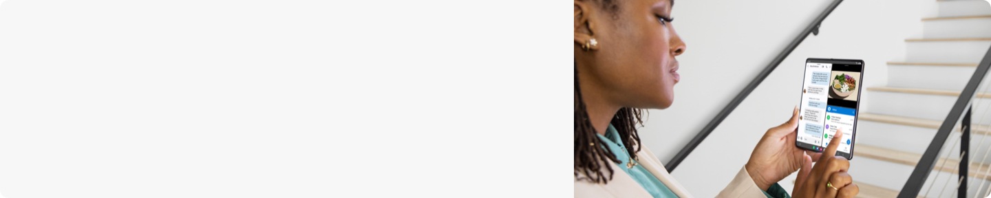 6Users must link their Galaxy device to their Windows PC through ‘Link to Windows’ on phone and Your Phone app on PC, follow the set-up prompts, including being signed into same Microsoft account. Link to Windows is preloaded on select Galaxy devices. Requires latest Windows 10 update on the PC. Phone requires Galaxy device to be on and connected to the same Wi-Fi network as the PC. Some mobile apps may restrict content to be shared on other screens or may require a touch screen to be able to interact with them. Up to 5 Android applications can be launched simultaneously.