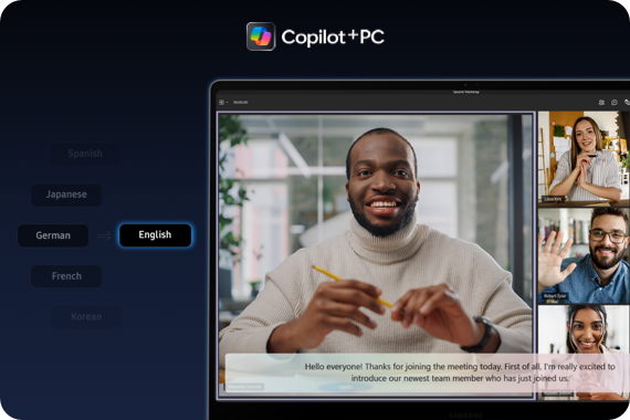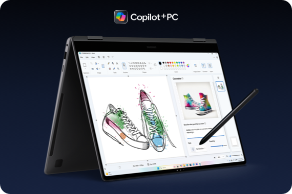 *Copilot+ PC experiences will not be available on Galaxy Book5 Pro 360 at launch. Will be available via future update. Availability is dependent on Microsoft’s release schedule. See aka.ms/copilotpluspc. Copilot requires an Internet connection and Microsoft account. Galaxy AI features require compatible phone, Samsung Account and internet connection.