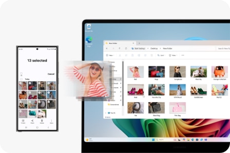 2Requires Galaxy S22 Series, Flip4 or Fold4 and later with One UI 6.1 and above. Must be logged in to the same Windows and Samsung account on both devices and have a Bluetooth and WiFi connection.