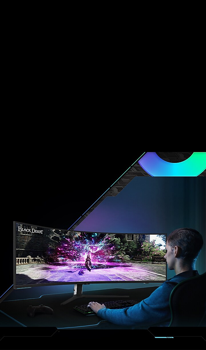 Immense worlds envelop you through a super ultrawide display. A screen as wide as two quad high definition monitors delivers maximum space to take in all the pin-sharp detail. It wraps around your field of vision with 1800R curvature, putting you fully into your character's shoes.