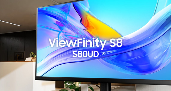 - • • ViewFinity S8 Monitor with 4K UHD Resolution and higher pixel density delivers crystal-clear visuals for enhanced creativity. More screen space and greater color detail enable a smoother workflow.