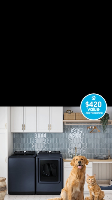 θBetween February 27, 2025 through December 31, 2025 (“Promotional Period”), at participating retailers only, in the same transaction (same receipt), purchase an eligible Samsung washer and an eligible Samsung dryer (each washer/dryer pair, a “Qualifying Purchase"), submit a valid offer claim form at https://www.samsung.com/us/promotions/petcare-promo-2025 (“Offer Redemption”) and receive by email (required) a code for a free 1-year membership to Airvet.com (“Reward”). Must complete Offer Redemption within 90 days of promotion end date for validation; once validated, Reward will be delivered via email with instructions for use and activation (additional Airvet terms and conditions may apply). Reward valid only at https://www.airvet.com/pet-parents, and must be redeemed within 90 days of being received. Membership is valid for one year from date account is activated. See Eligible Samsung models and additional offer Terms at https://www.samsung.com/us/promotions/petcare-promo-2025 Eligible Samsung models are: WA54CG7150ADA4, DVE54CG7150DA3, DVG54CG7150DA3