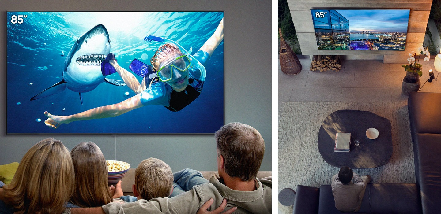 The bigger the screen, the more pixels matter. 8K resolution delivers 33 million separate pixels, compared to about 8 million pixels for 4K resolution. That massive increase in pixels means that even a big 85” screen will have a high pixel density that always delivers a crisp, clear image.²
