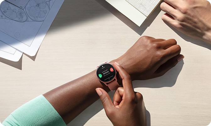One of the features that makes a smartwatch most like a smartphone is the ability to send both text and voice messages. With Galaxy Watch, this is supported by our pre-installed Messages app that allows you to create new messages, or view incoming messages and send replies. Plus, if you’re more than 10 yards away from your connected phone, Galaxy Watch⁵ will use mobile data to operate so there’s no need to carry your phone with you when you’re out pounding the trails.