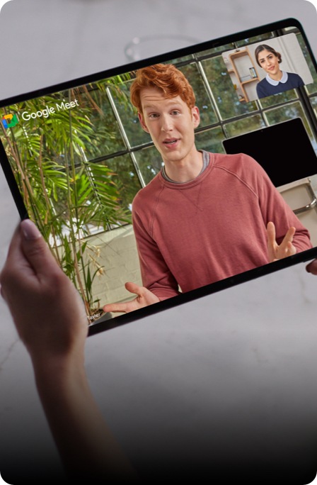 Want more space to connect face-to-face? Transfer Google Meet video calls from phone to laptop or tablet.¹²