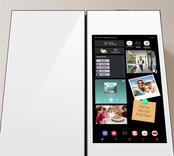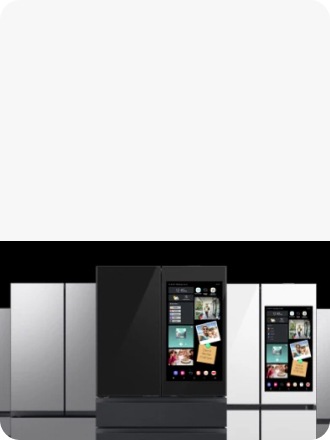 ¹AI Home LCD Display on RF90F29/23BECRAA Refrigerators accesses AI Vision Inside™, Bixby and personalized recipe recommendations based on AI algorithms. Wi-Fi connection and Samsung account required.